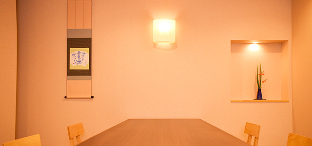 お座敷の入り口には「話盡山雲海月情(話し尽くす山雲海月の情)」の書を頂き、